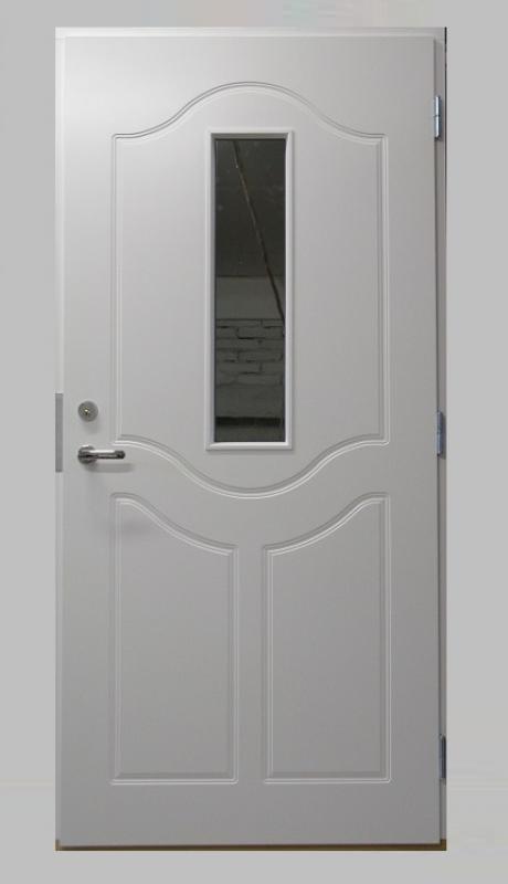 Maja välisuks 980 x 2080 HDF + alumiinium, soojustus 50 mm, ukse paksus kokku 60 mm, värvitud, 2 x silikoontihendid, reguleeritavad hinged 3tk, klaaspakett P44s-16ar, kujundus välispoolel, lukukomplekt ASSA AN565Cr koos lingiga.
